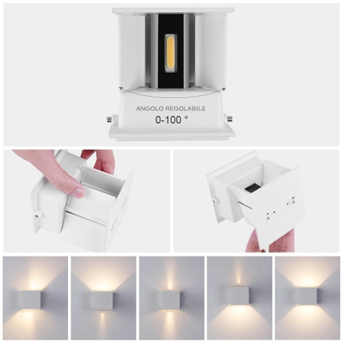 Lampada da Parete Applique a LED 12W con Angolo di visualizzazione Regolabile Impermeabile IP65 - Illuminazione a Parete 2700K Bianco Caldo 10 x 10 x 10 cm Nero [Classe di efficienza energetica A+] [Classe di efficienza energetica A]